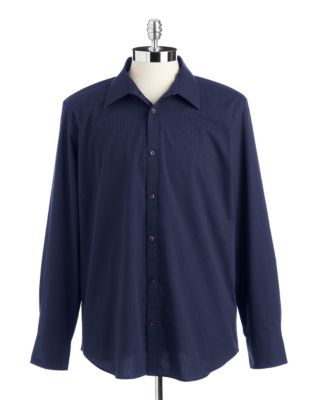 This classic striped dress shirt from Calvin Klein delivers a polished look for work and weekends. Comfortable non-iron cotton with a hint of stretch gives this shirt its modern fit. Spread collarBarrel cuffs with...