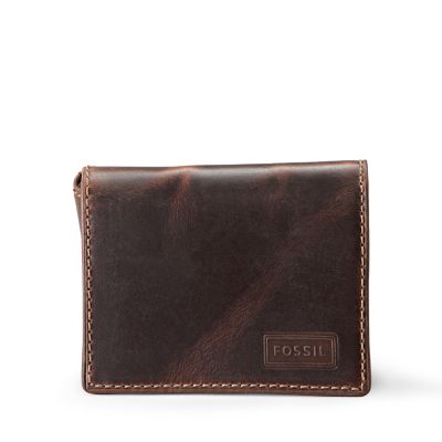 | Fossil s Sam Execufold is the wallet that holds it all. Features a rich leather exterior with light contrast stitching and a logo-embossed front. ID window; six card slots and three slip pockets at interior... |