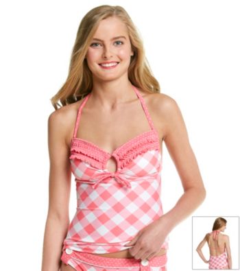Hula Honey Swimsuit, Gingham Ruffle Halter Tankini Top Women's Swimsuit Women's - Clothing Apparel - Swim