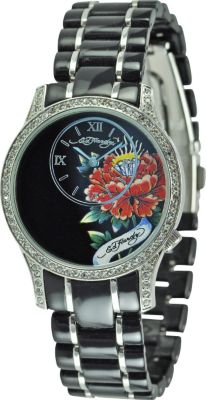 This lovely women's jasmine watch from Ed Hardy features a stainless steel case with a coordinating black acrylic strap. The black dial is home for blue hands and Roman numerals for easy and stylish time-telling. ...