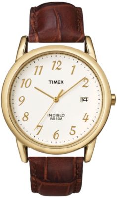 Men s Timex Easy Reader watch has handsome good looks with a brown crocoembossed genuine leather band date window and INDIGLO nightlight. Cream dial3hand quartz movement from the PhilippinesDate windowINDIGLO nigh...